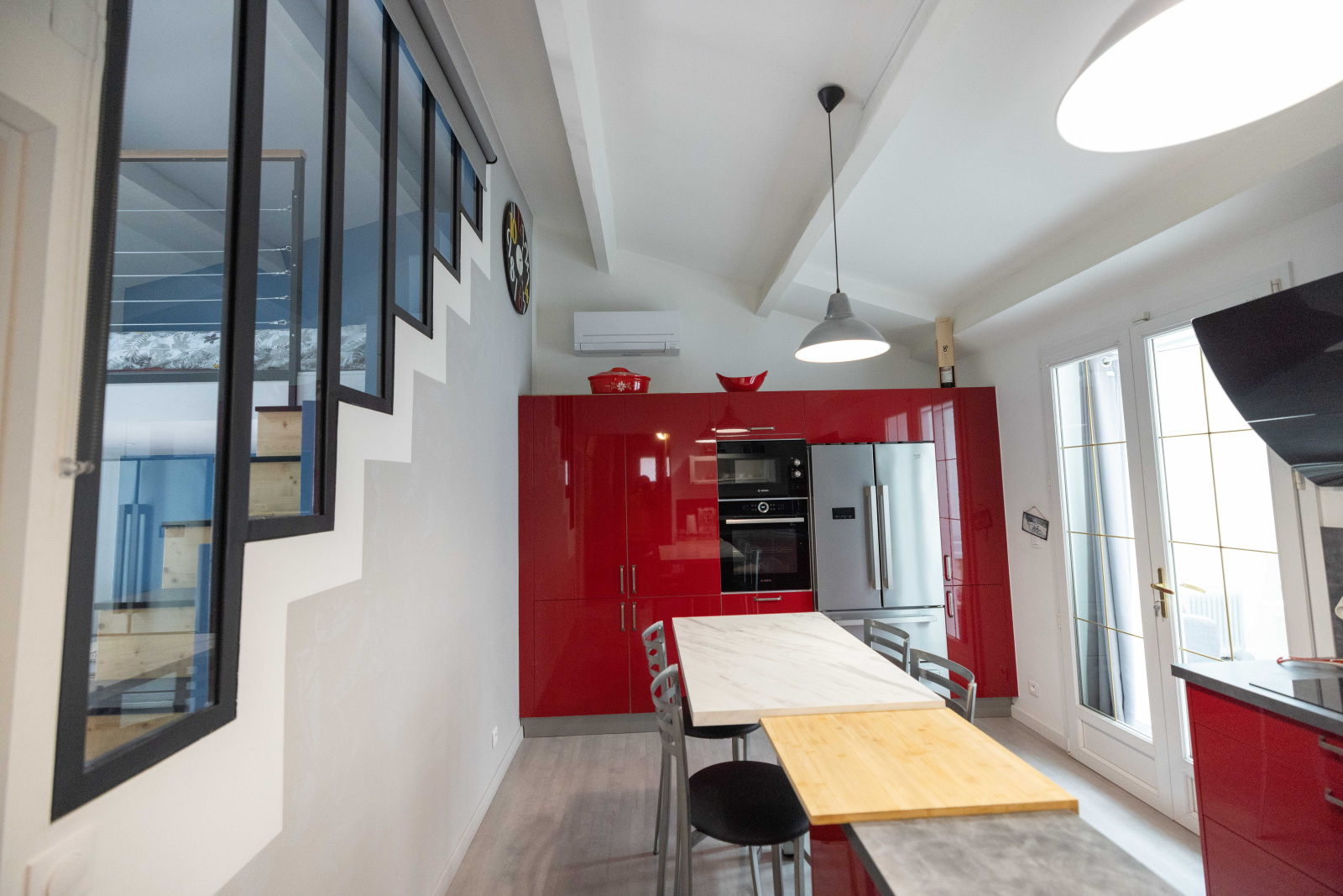 A ce jour, la maison a été divisée en deux grands logements de 72m² et 65m² qui permettent aux propriétaires de vivre sur un étage, et générer un rendement locatif sur l'autre niveau. Pour autant il est possible, de recréer un ensemble de maniere relativement simple, et ainsi retrouver une maison de type 5 comme à l'origine.